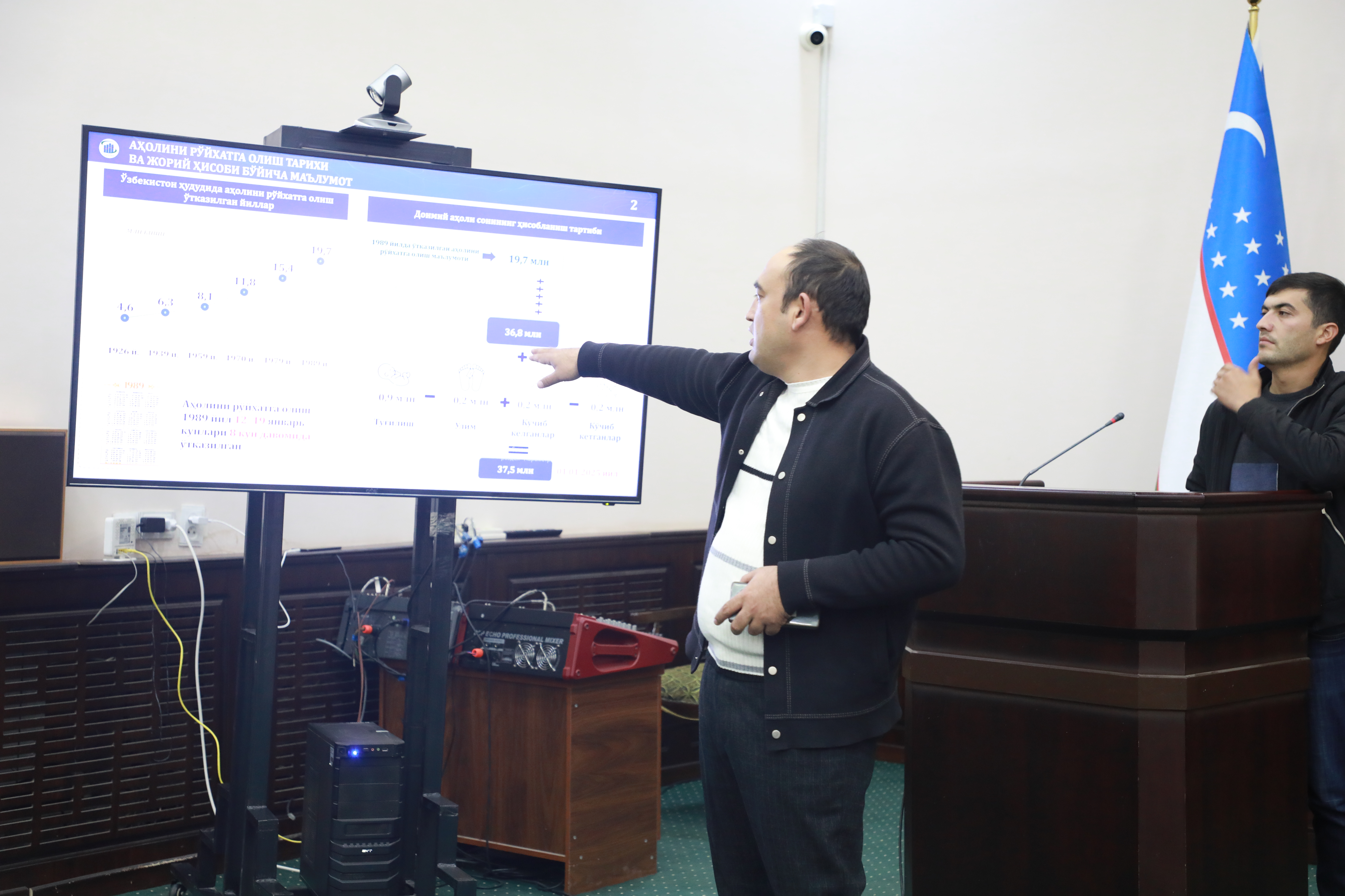 Jarayon davomida ishtirokchilarga Buxoro viloyati Statistika boshqarmasi vakillari tomonidan jarayonning mohiyati, planshet qurilmalaridan platformaga kirish, shakllarni to‘ldirish tartiblari tushuntirilib zarur ma'lumotlar yetkaziladi. Seminar yakunida ishtirokchilar savollarga javob berildi va dolzarb takliflar muhokama uchun qabul qilindi.